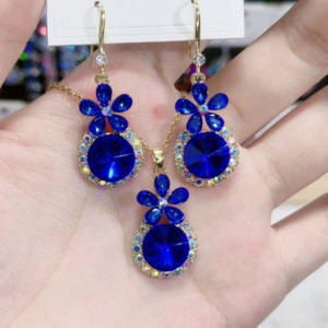 Floral Zircon Crystal Necklace and Earrings Set